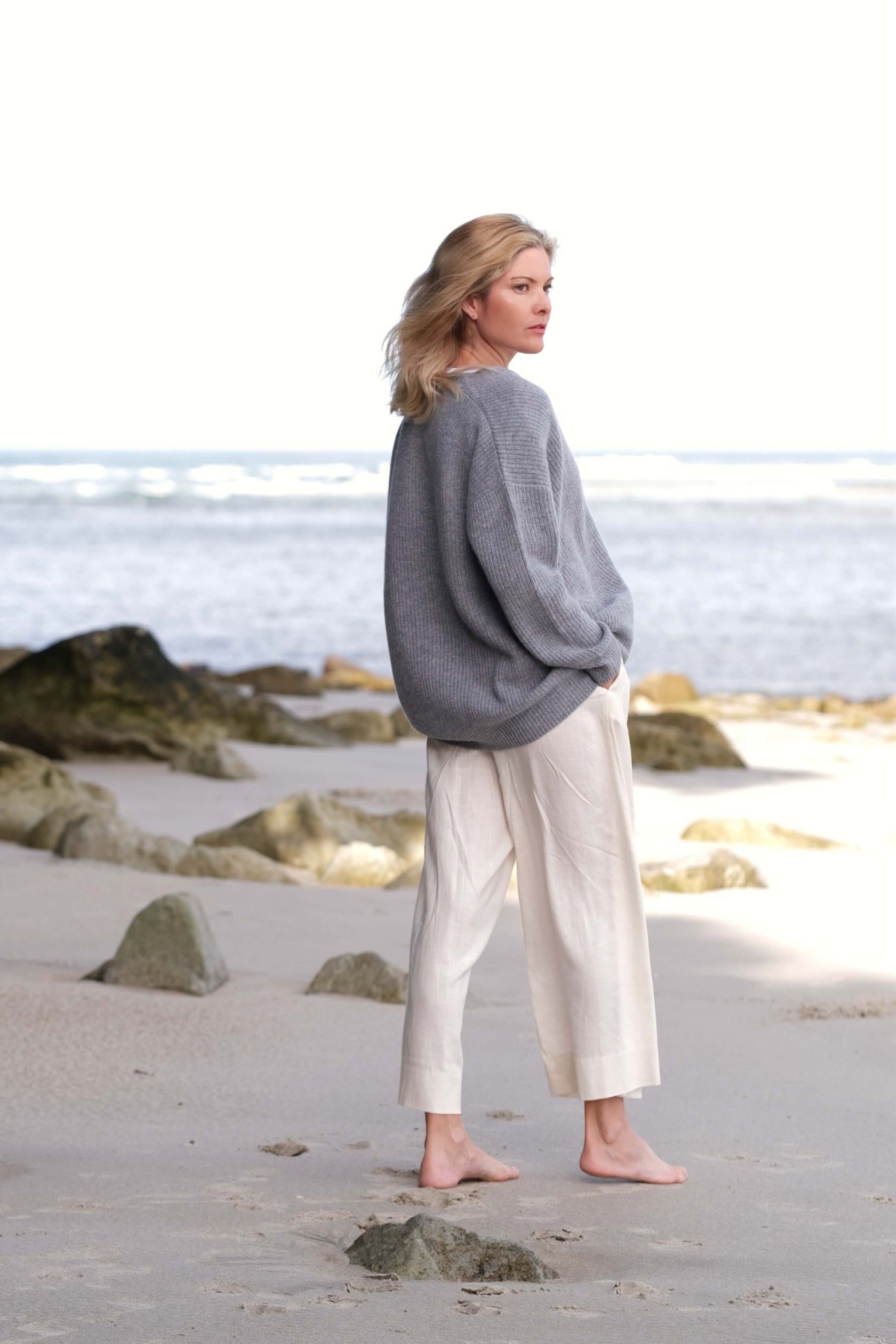 Luxe Relaxed Fit Cashmere Cardigan - Grey